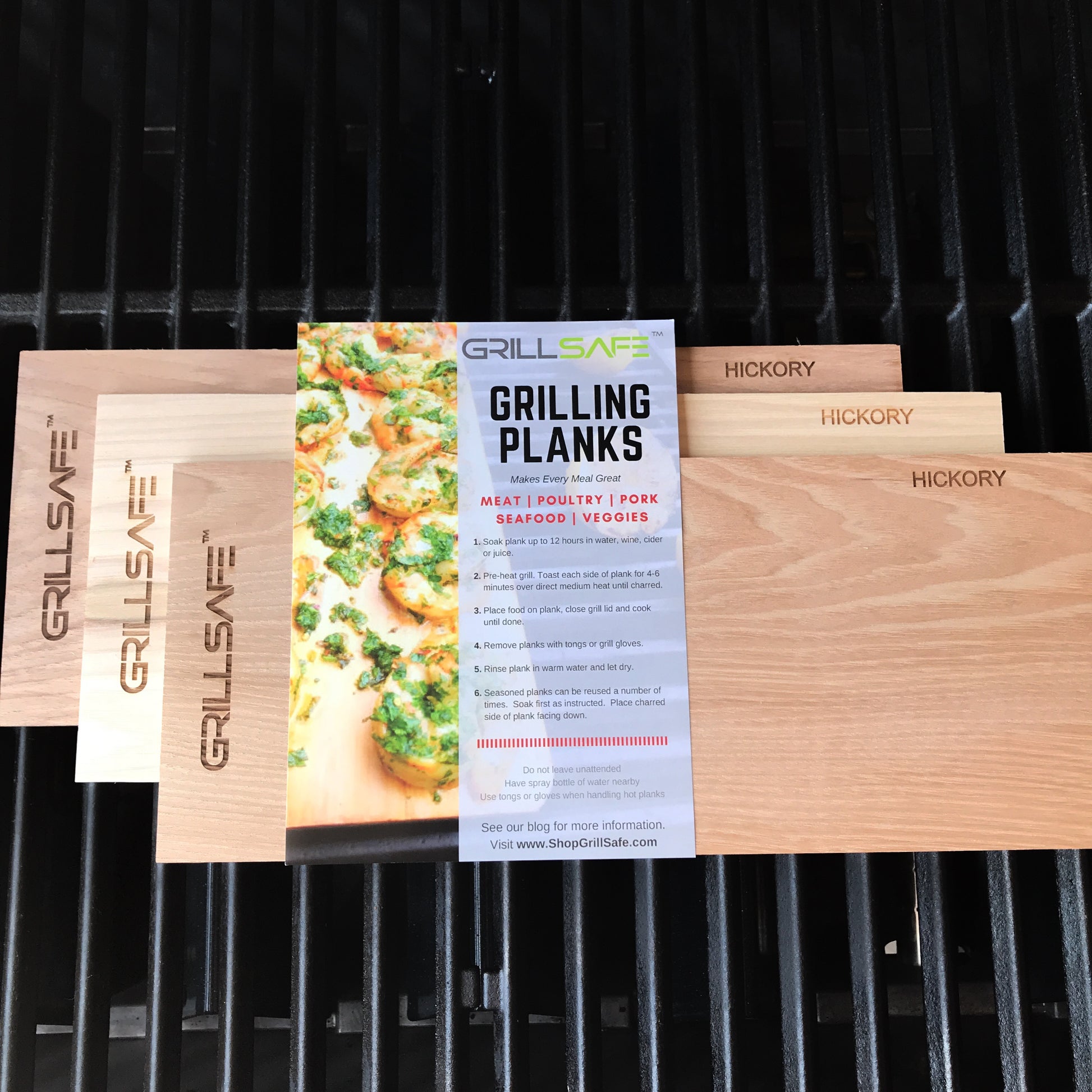 Available in 1-Plank, 2-Plank, and 3-Plank Bundles, our hickory grilling planks are the perfect complement to any grilling occasion. Unleash the true essence of hickory flavor on your grill and take your culinary creations to new heights. Elevate your grilling game with GrillSafe's genuine hickory grilling planks today!